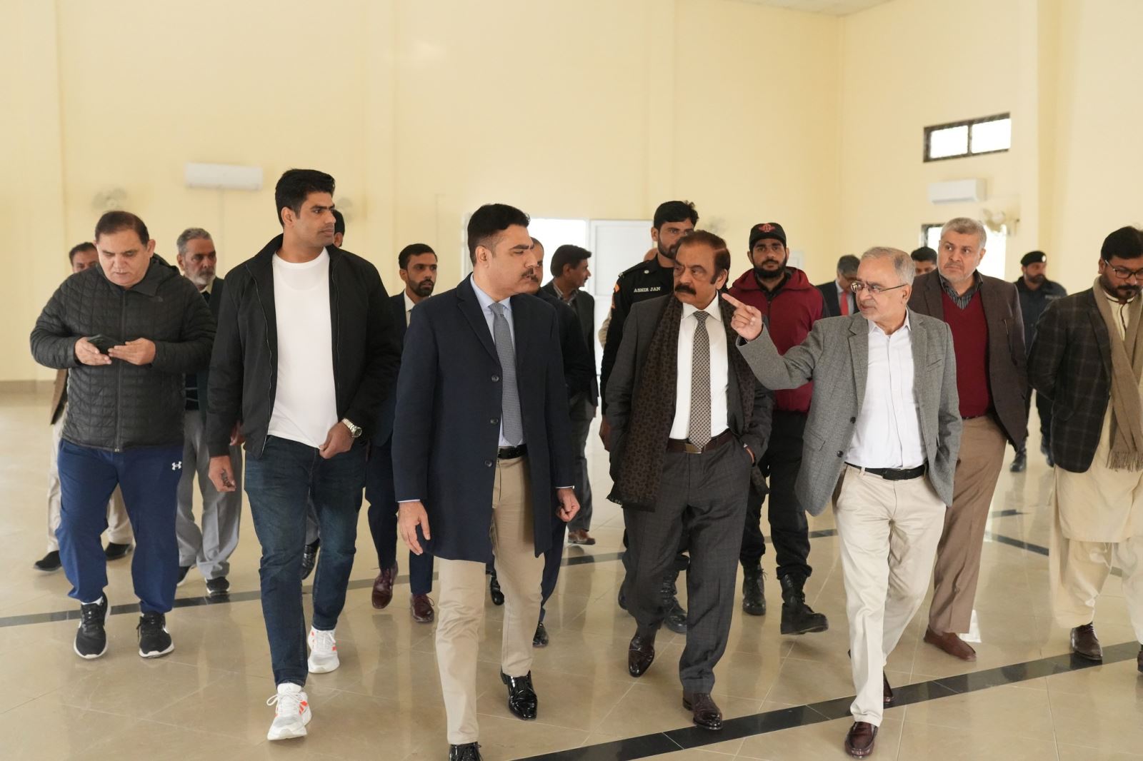 Federal Minister for IPC Rana Sana Ullah Khan visited the Biomechanics Laboratory and Players Hostel, currently under development as part of Arshad Nadeem High Performance Academy and reviewed its advanced facilities aimed at enhancing athletic performance. He also inspected the Medical Center, appreciating the comprehensive healthcare services available to support our athletes.