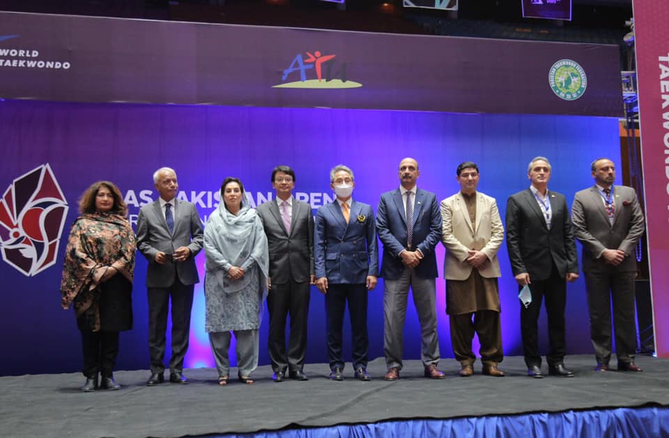 Federal Minister for IPC/President, PSB & Director General, PSB in the opening ceremony of COAS Pakistan Open International Taekwondo Championship 2021