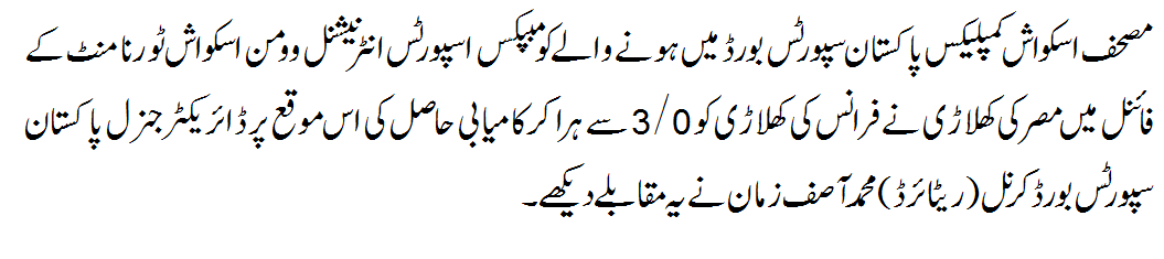 DG PSB, Col. Muhammad Asif Zaman (Retd) watching final of Combaxx Sports International Women Squash Tournament at Mushaf Squash Complex, Islamabad