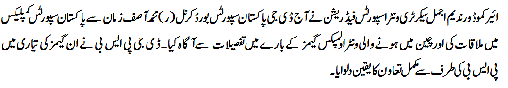 DG PSB, Col. Muhammad Asif Zaman (Retd) in a meeting with Air Commodore Nadeem Ajmal, Secretary Winter Sports Federation in PSC, Islamabad