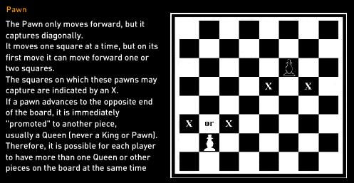 The players take turns moving their pieces, with the "white" player always moving first. By moving on to a square containing an opponent's piece, it is possible to make a capture and remove that piece from the game.