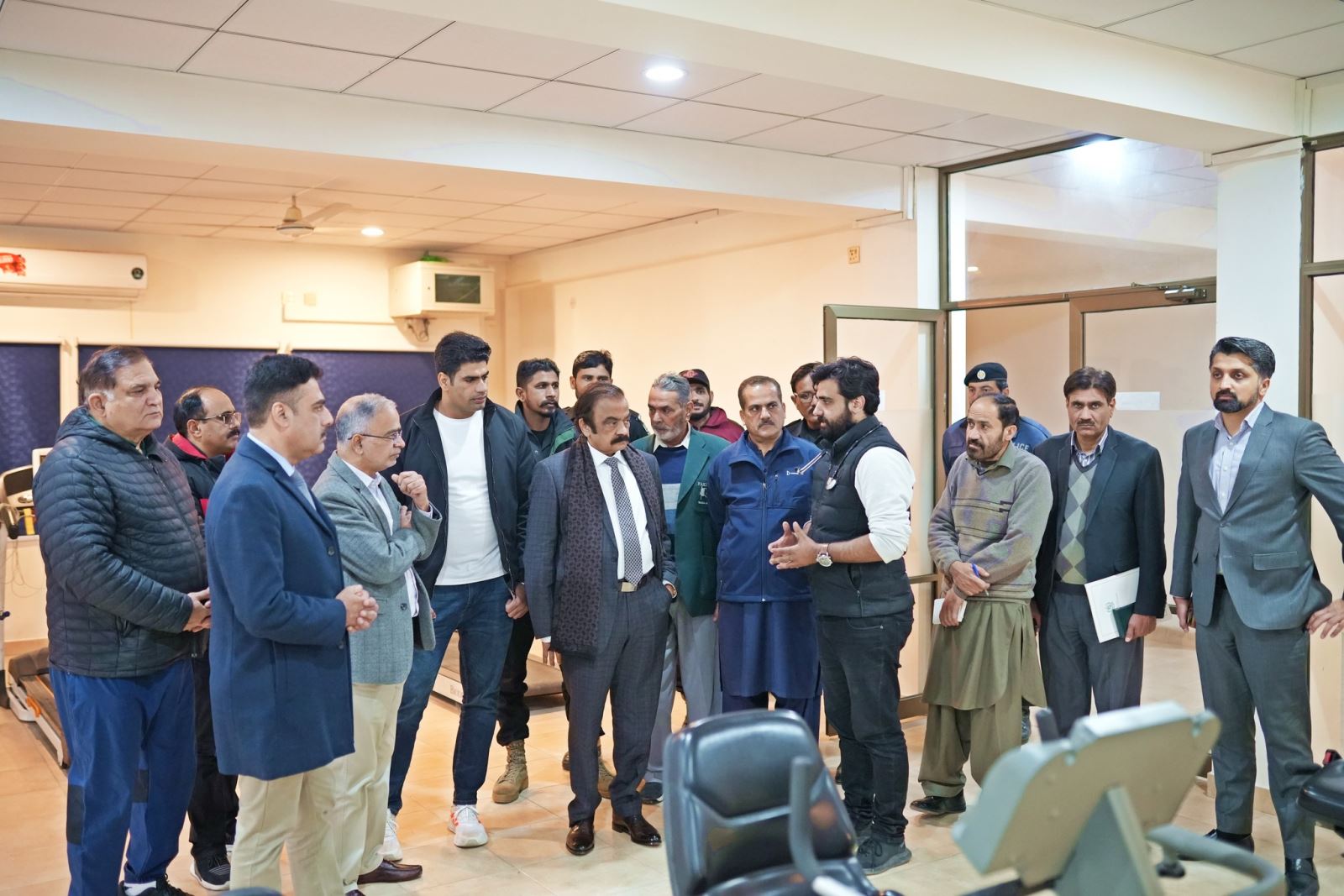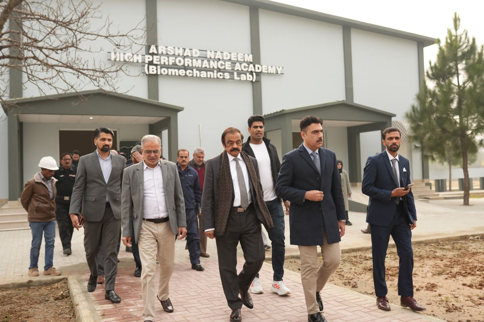 Federal Minister for IPC Rana Sana Ullah Khan visited the Biomechanics Laboratory and Players Hostel, currently under development as part of Arshad Nadeem High Performance Academy and reviewed its advanced facilities aimed at enhancing athletic performance. He also inspected the Medical Center, appreciating the comprehensive healthcare services available to support our athletes.