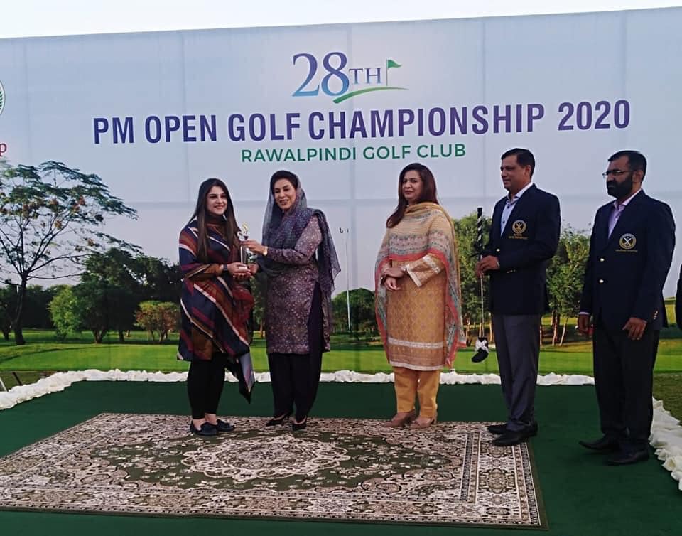 Dr. Fehmida Mirza, President Pakistan Sports Board distributing trophies among the winners of 28th PM Open Golf Championship 2020 held at Rawalpindi Golf Club Government of Pakistan.