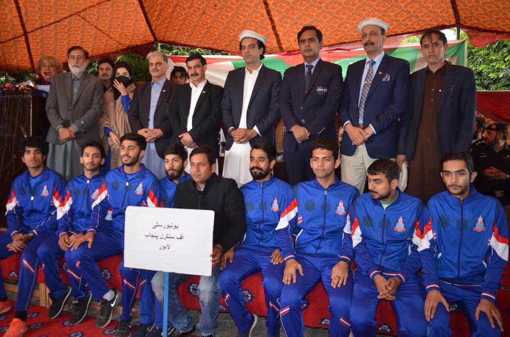DG Pakistan Sports Board Col (R) Muhammad Asif Zaman and Special Assistant to the Prime Minister Usman Dar at the inaugural ceremony of the Kamyab Jawan Sports Drive at University of Peshawar, KP
