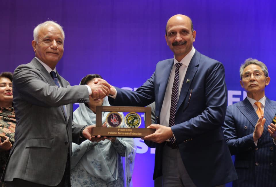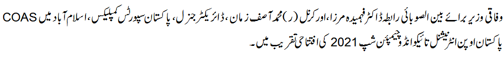Federal Minister for IPC/President, PSB & Director General, PSB in the opening ceremony of COAS Pakistan Open International Taekwondo Championship 2021