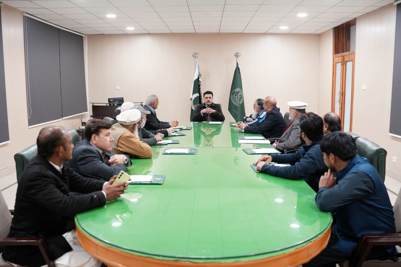 A meeting was held today under the chairmanship of Mr. Muhammad Yasir Pirzada, DG, PSB with hockey legends, namely Shehnaz Sheikh, Khalid Bashir, Rao Saleem and Saleem Nizami etc. to discuss the matters of hockey.