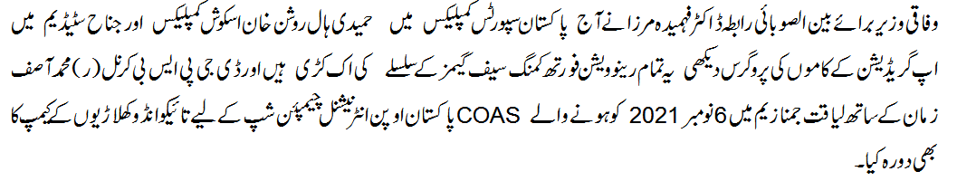 Federal Minister for IPC/President, PSB visited Pakistan Sports Complex, Islamabad for inspection of renovation work