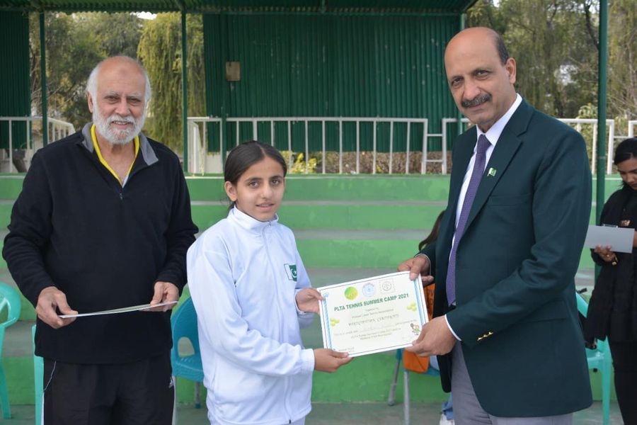 Directer General Pakistan Sports Board, Col(R) Muhammad Asif Zaman distributed medals and certificates among the winners of 2nd Maryam Mukhtar Shaheed Tennis Tournament